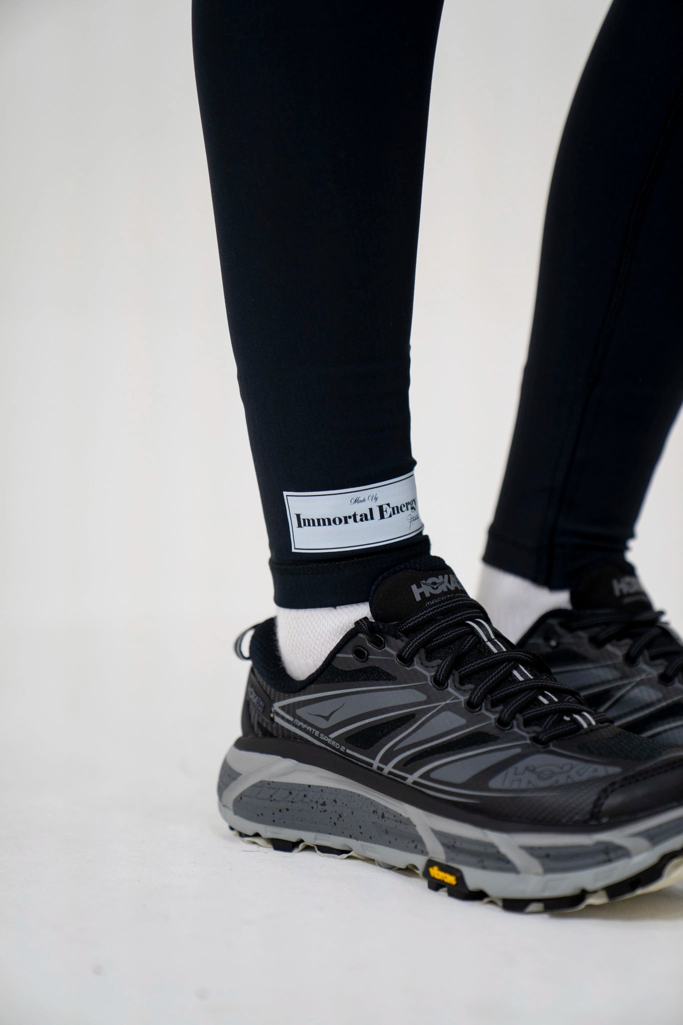 Calza deportiva con tiro alto para mayor confort. Composición de la tela 85% poliamida, 15% elastano.